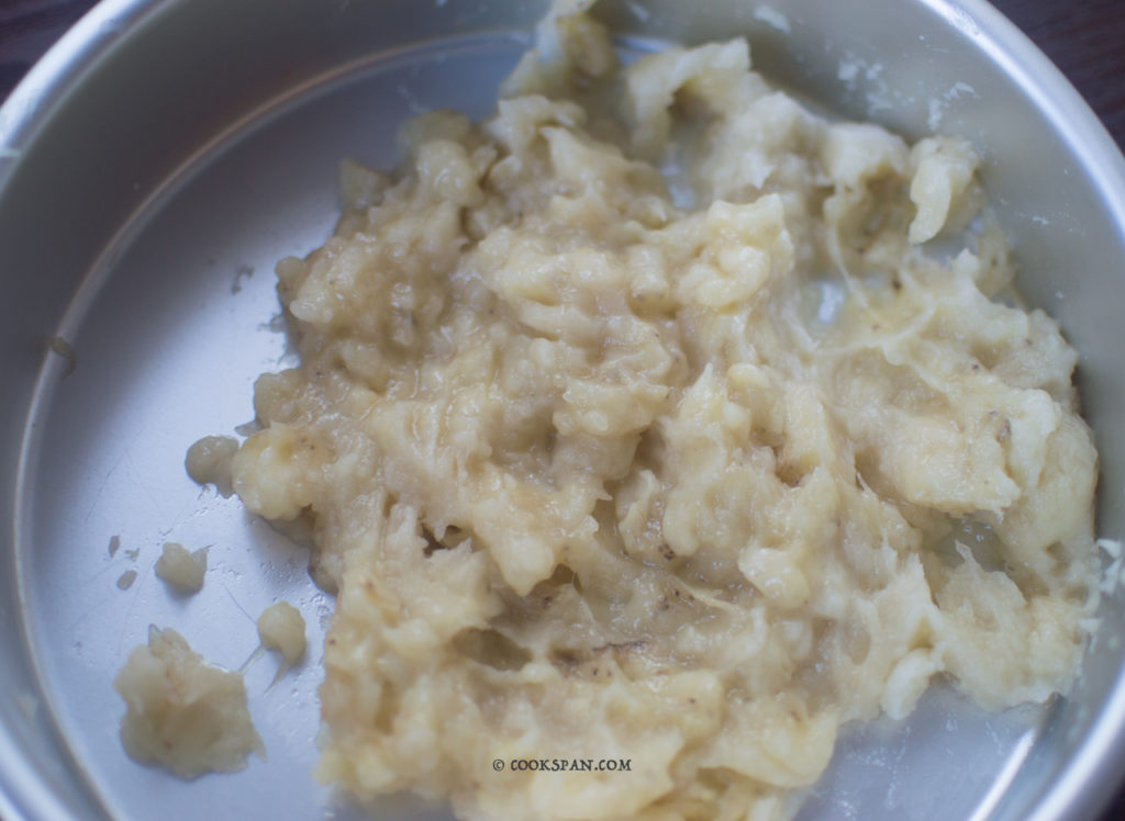- Remove the skin of bananas and mash them well.