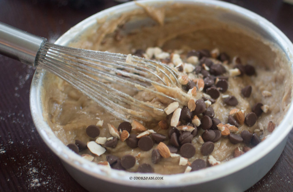 Banana Bread _Step 5 6. Add the crushed almonds and Choco chips to the batter.