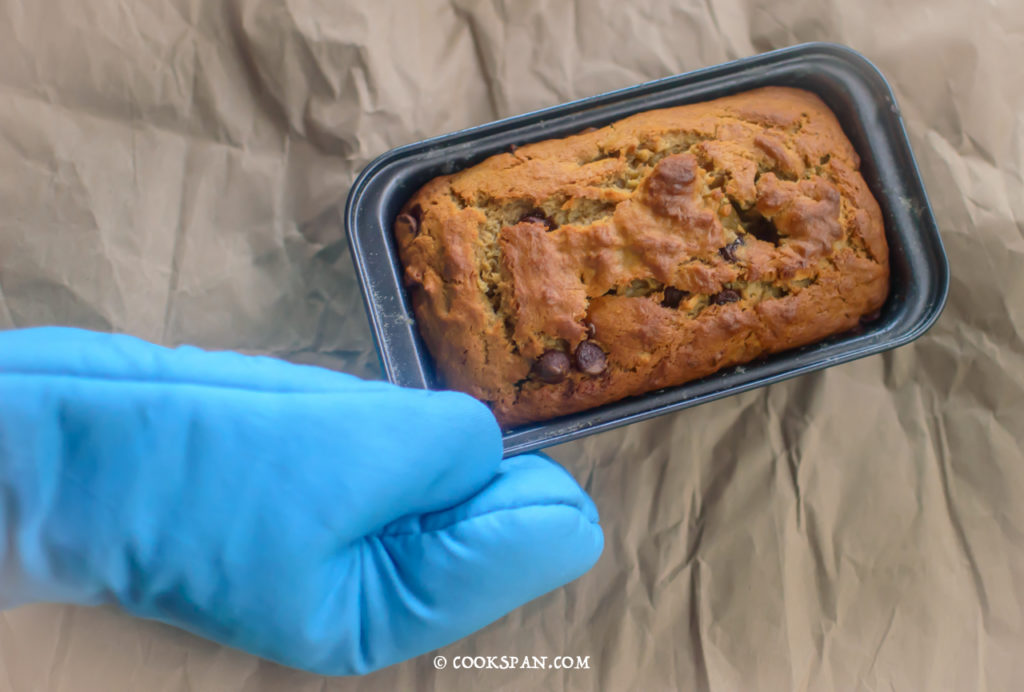 Banana Bread _Step 8 9. Prick the cake with a toothpick. If it comes out clean the bread is done else bake for 5 more mins.