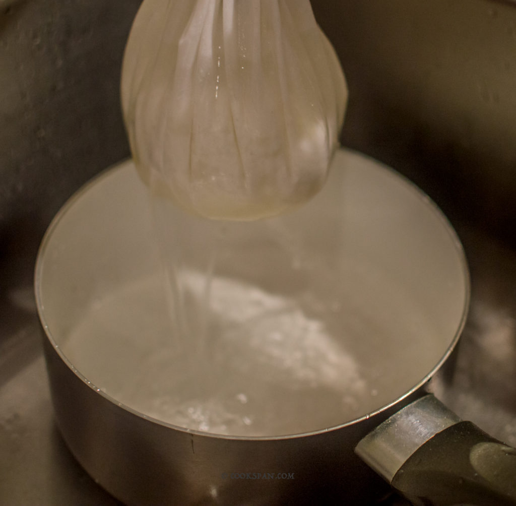 Sandesh_Step_06 6. Tightly tie the cloth and hang, so that excess water is released in 20-30mins.