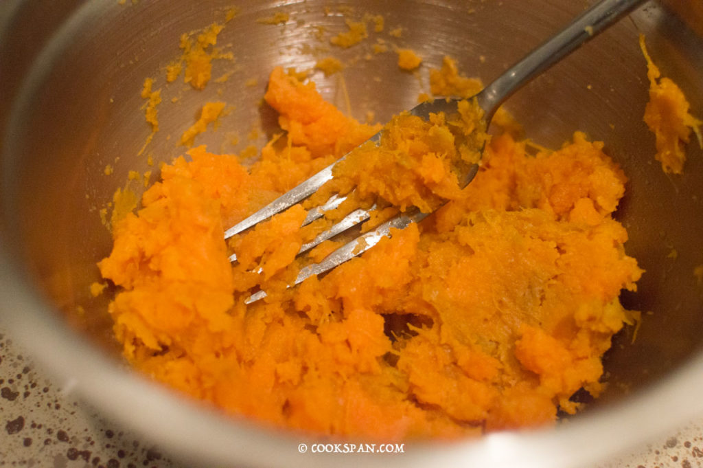 - In another bowl, peel off the sweet potatoes and mash it.