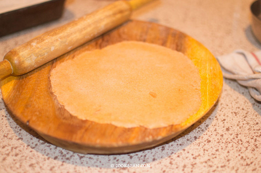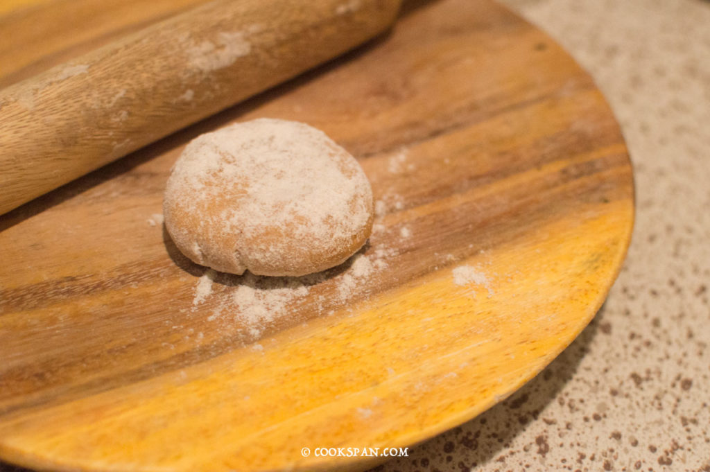 - Dust the small portion of dough with dry flour and roll to make a flat bread of round shape.