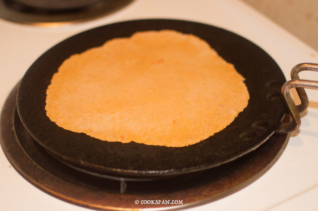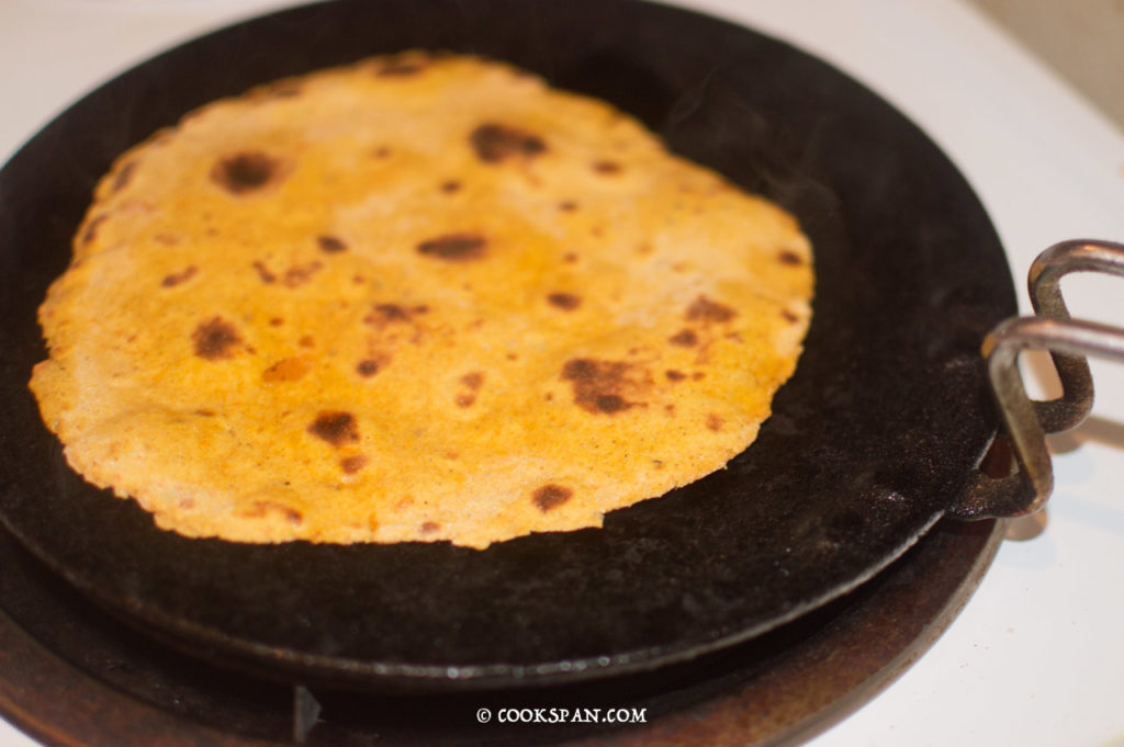 - Heat an iron griddle, add the flat bread. Flip it once bubbles appear on the surface.
