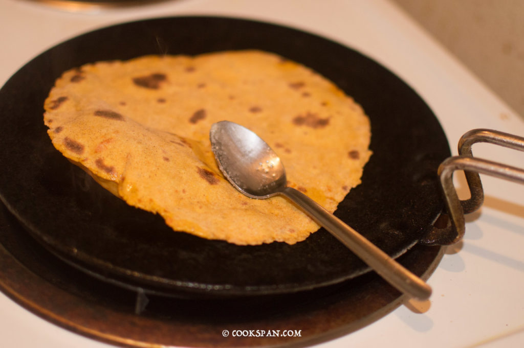 - Add 1 tsp of ghee and brush it on the surface facing upwards.