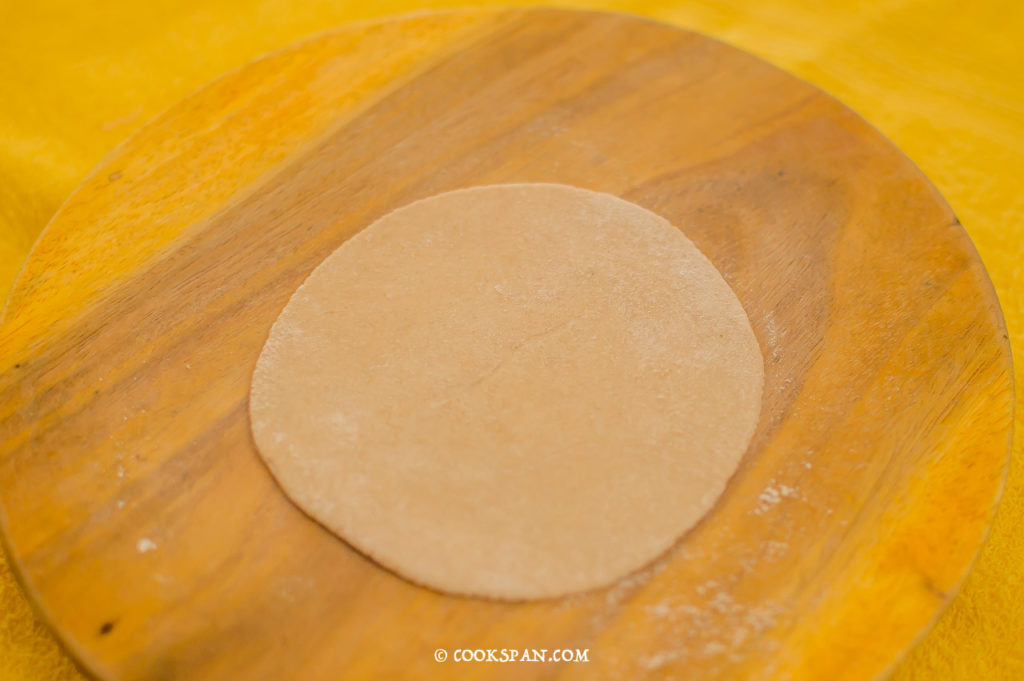 - Roll the two small balls into small circles apparently the size of the Puri.