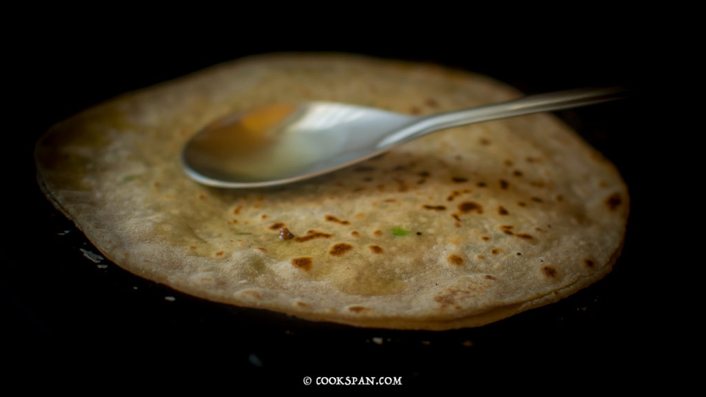 - Heat the Paratha till the bubble come. Flip it once and let the other side browns properly.