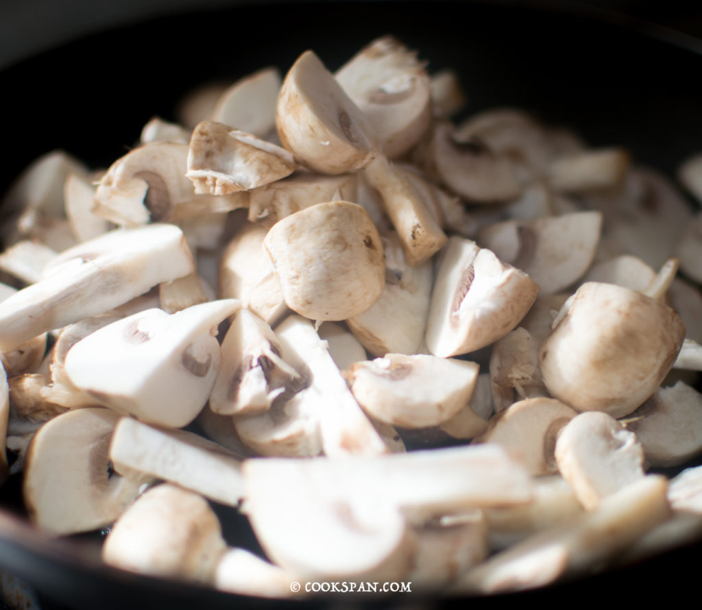 - Wash the mushrooms and pat it dry. Chop the mushrooms into medium sized cubes.