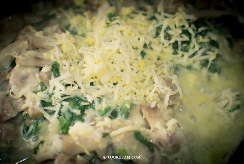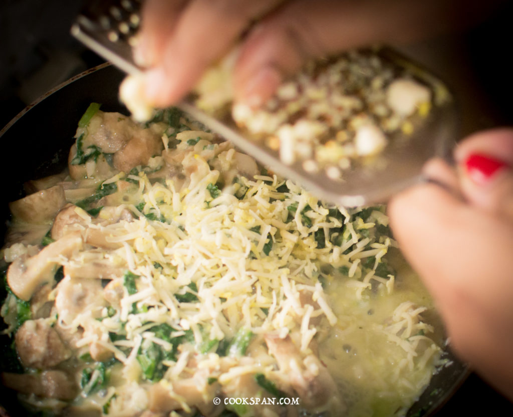 Stuffed Omelette with Spinach and Mushroom - Steps of Prep of Filling 12. Add some more cheese to make it more cheesy and yummy.