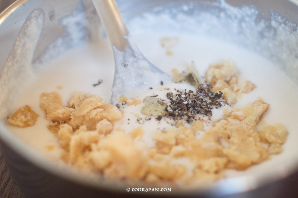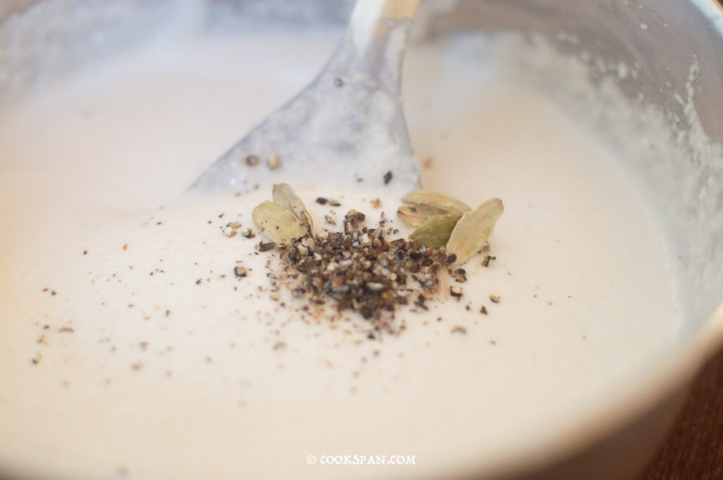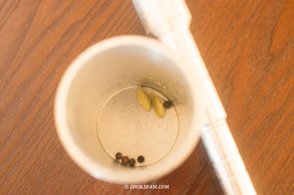 - Coarsely grind the peppercorns and cardamom, and add to the batter.