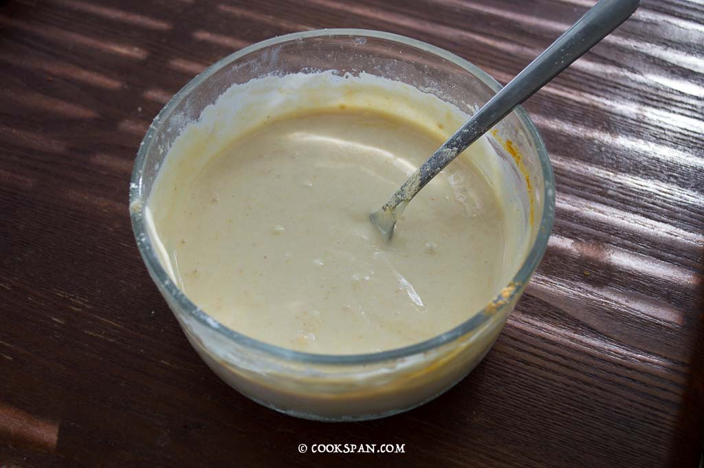 - Then to the entire mixture, add Besan and make a mixture using hand and ensure the mixture is not over runny or over thick.