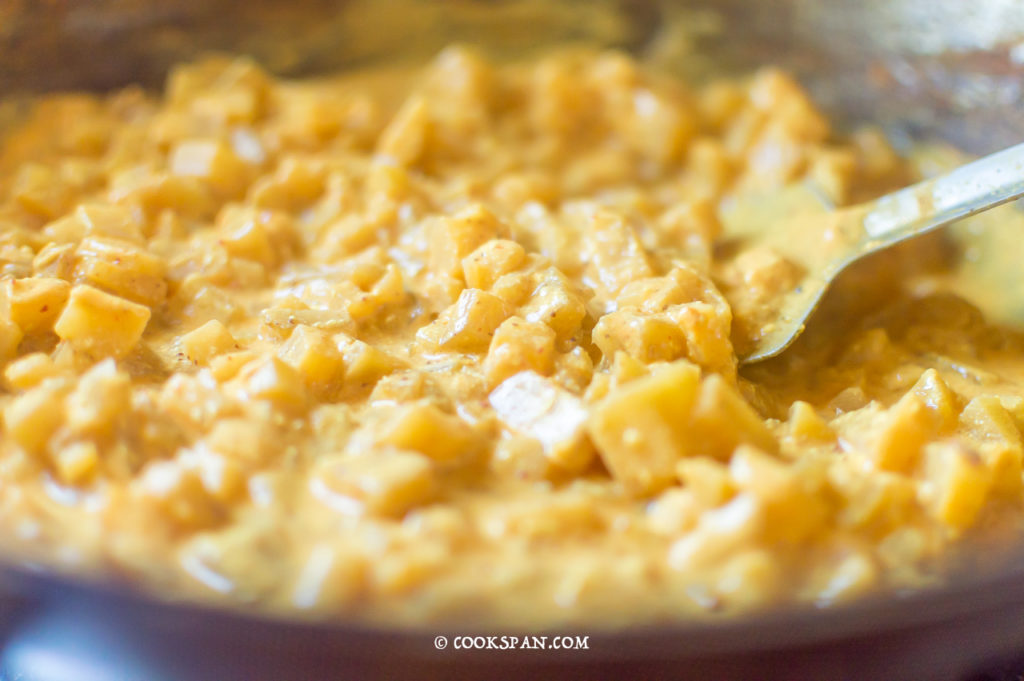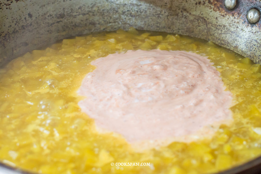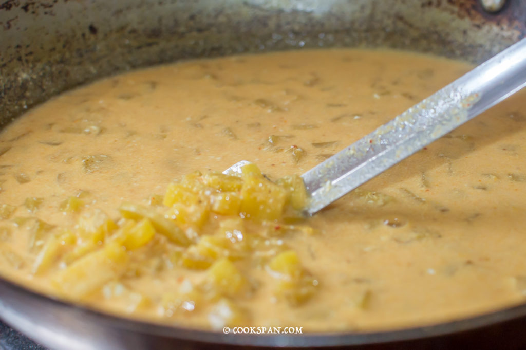Pouring the curd mixture to boiling Veggies