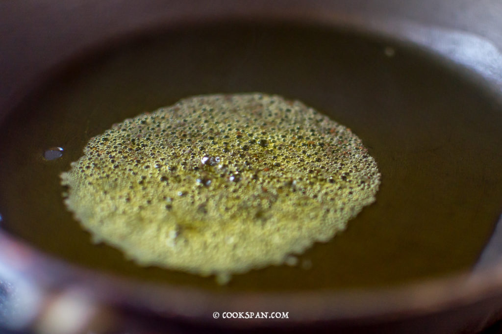 Adding Mustard Seeds to the hot oil in the pan