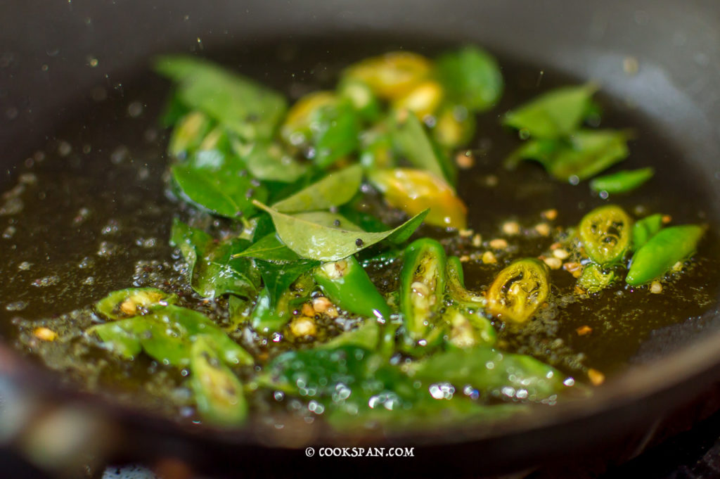 Adding the Curry Leaves and Green Chillies