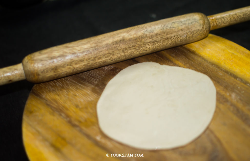 - Gently fold the Puri, bringing two edges of the pure together, ensuring the stuffing is properly laid inside.