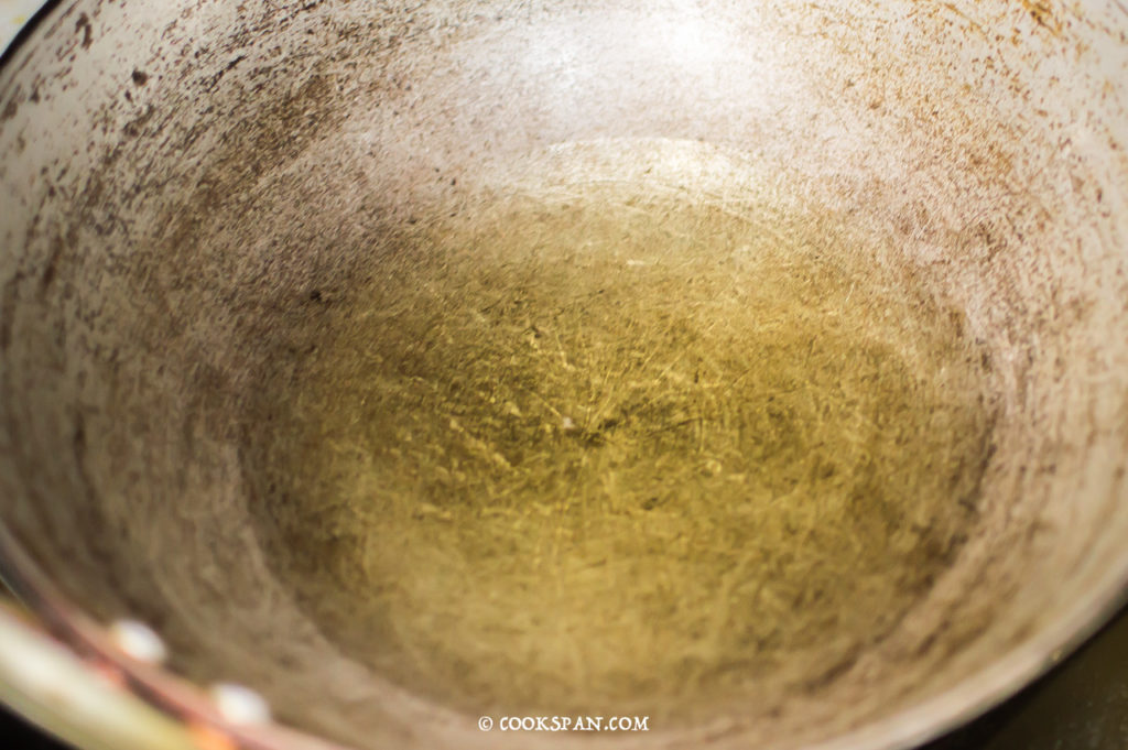 - Take a wide bottomed pan and add oil for frying.