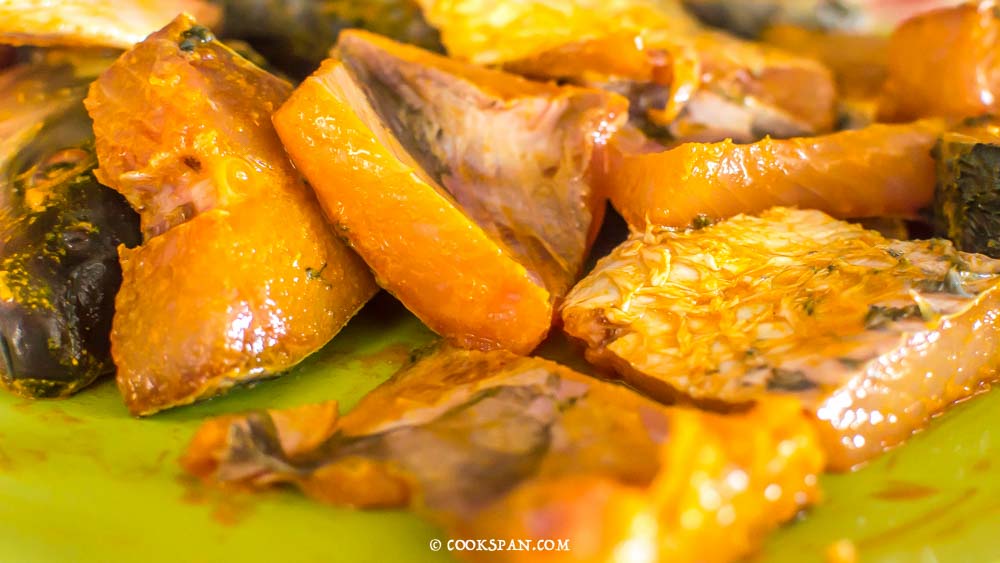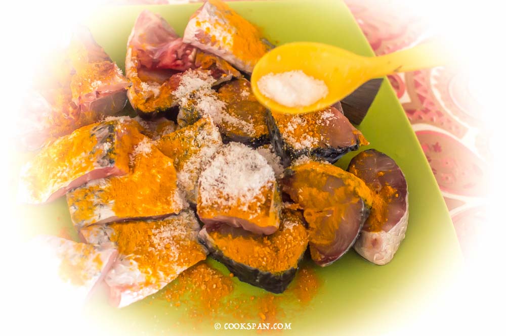 - Make sure you use your hands to properly mix the turmeric and salt with the fish evenly so that it coats well.