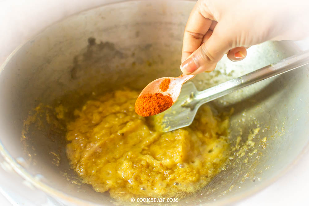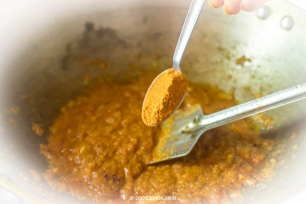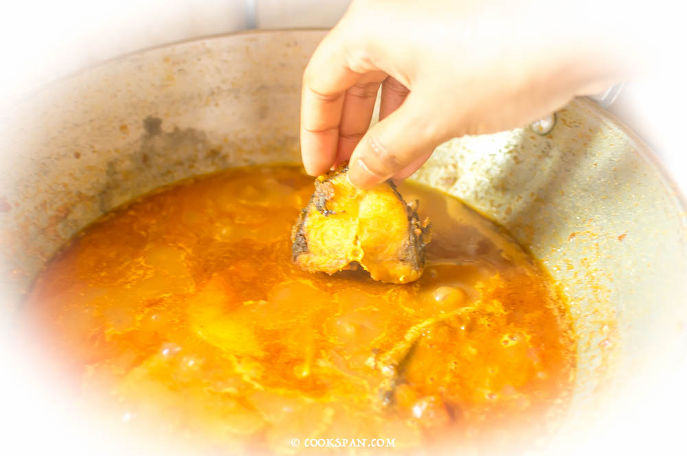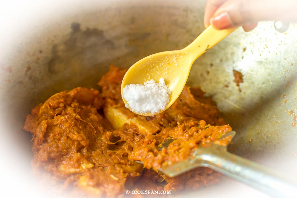 - Add the salt according to the taste, you have to be very cautious while adding salt as the salt was initially added in the fish.