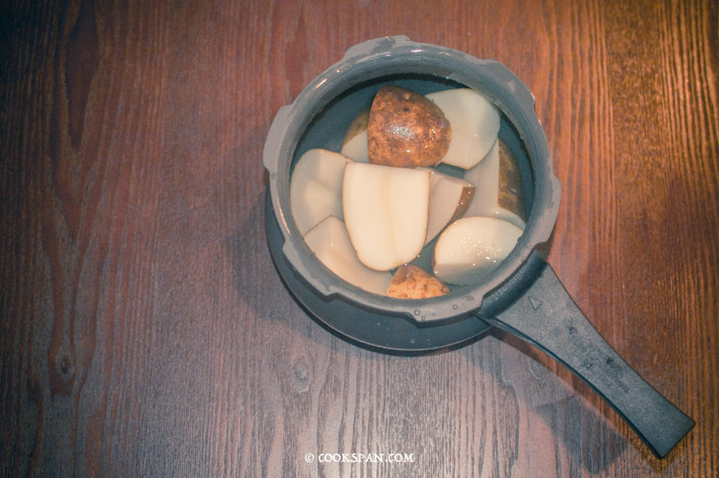 - Boil the potatoes, after it cools down, peel off and mash it.