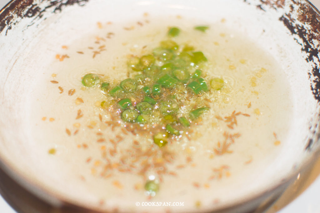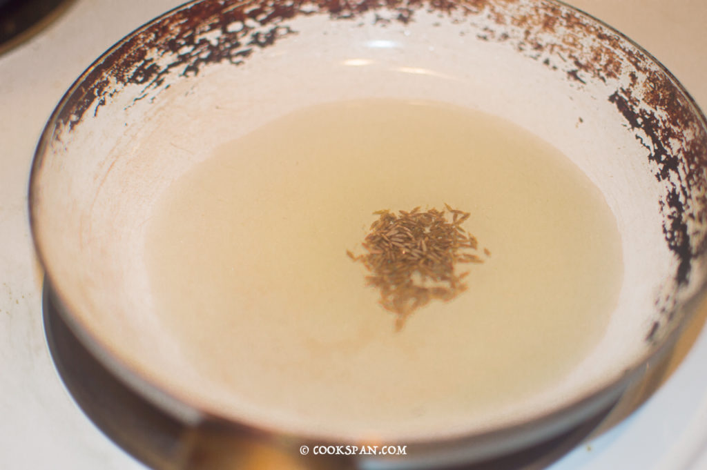 - After the oil is heated up, add cumin seeds and let it splutter.