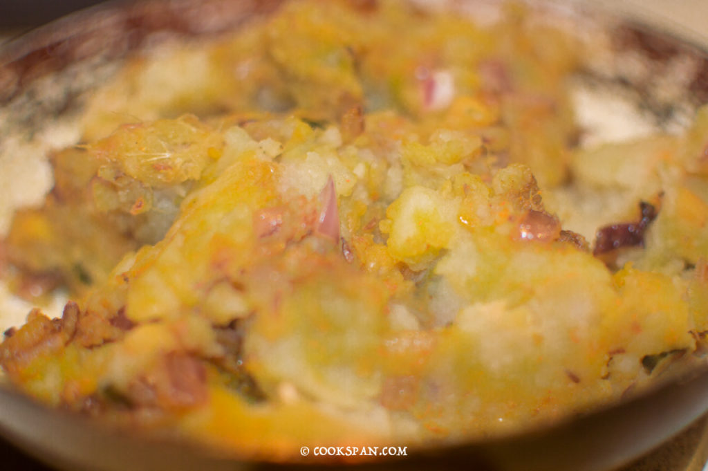 - Add the mashed potato and boiled yellow peas to the mixture and cook till the spices are coated evenly with the potato. Some people add roasted peanuts but my hubby asked to exclude it.