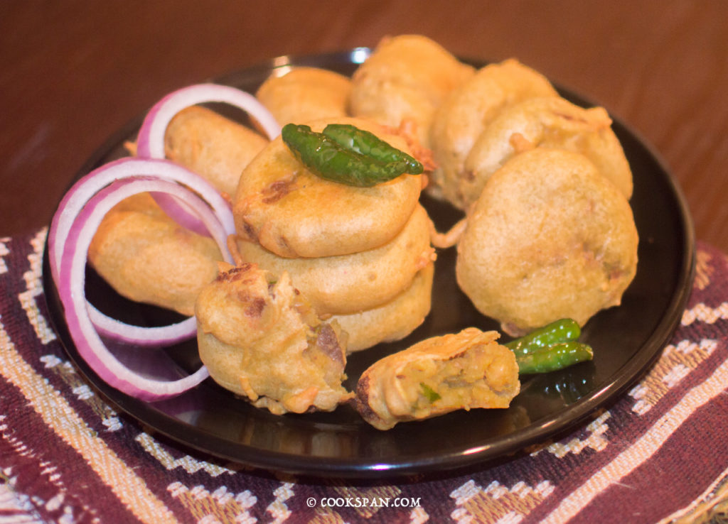 Aloo Chop, as it’s famously known as in Odisha and Bengal is spicy mashed potato coated with a thick layer of chickpea flour batter and fried generously with oil. It’s known as Batata Vada in Maharashtra and Aloo Bonda in Southern parts of India. The best part of the dish is when you munch it, the pillowy chickpea floor coating discloses a sudden burst of flavors. Loads of spices, nuts and the very favorite potato. I remember in my childhood days the roadside vendor use to pack them with some fried green chilies and raw onion rings with a sprinkle of black salt.