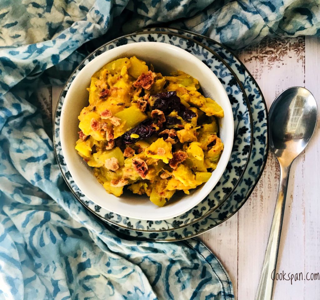 - Finally, add the tempering to the cooked vegetables, mix well, and serve with a hot bowl of rice or hot rotis.
