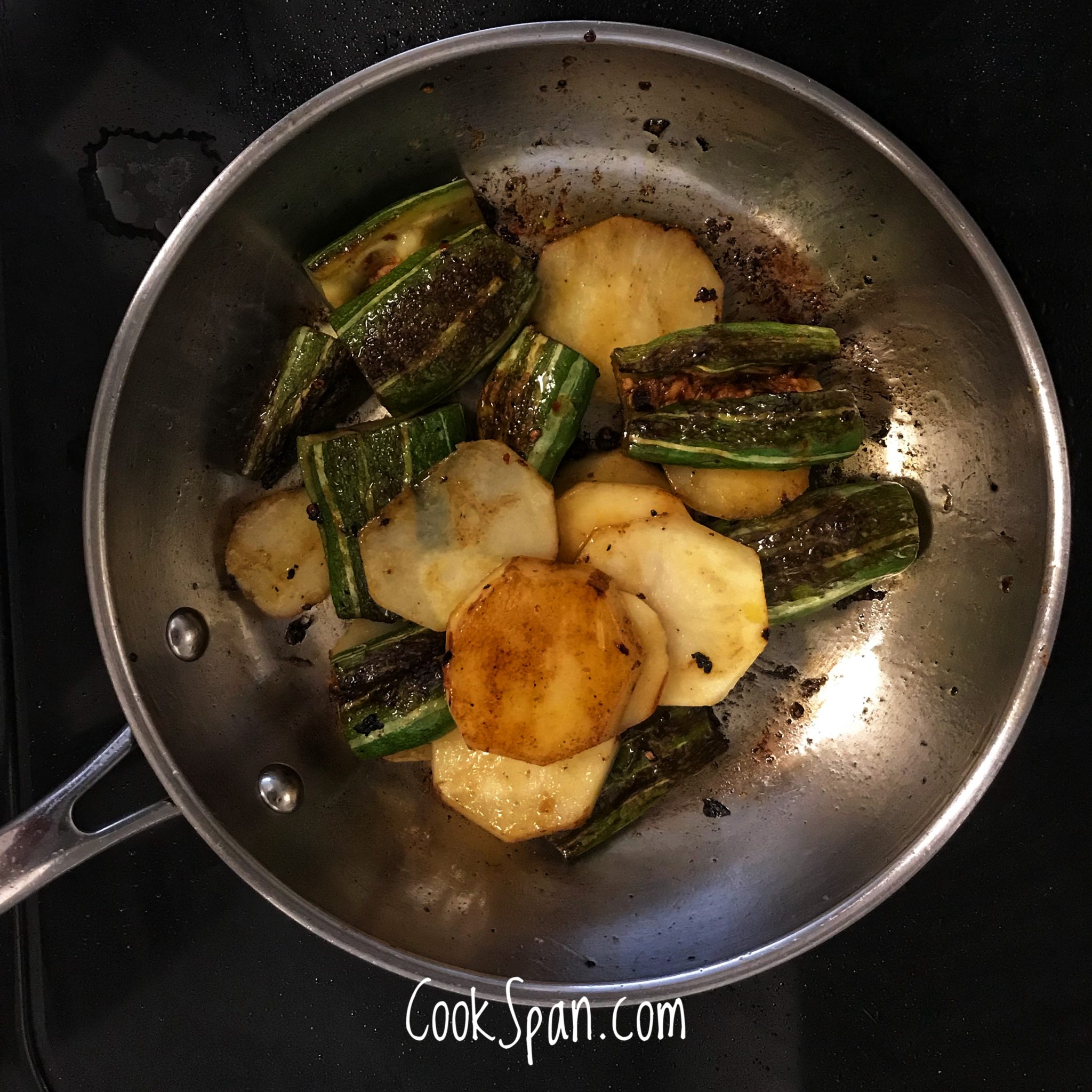 Adding the Potatoes in the pan 9. After adding potatoes, make sure to cover and cook for 2-3 mins to ensure all the veggies are cooked thoroughly, yet not overcooked.