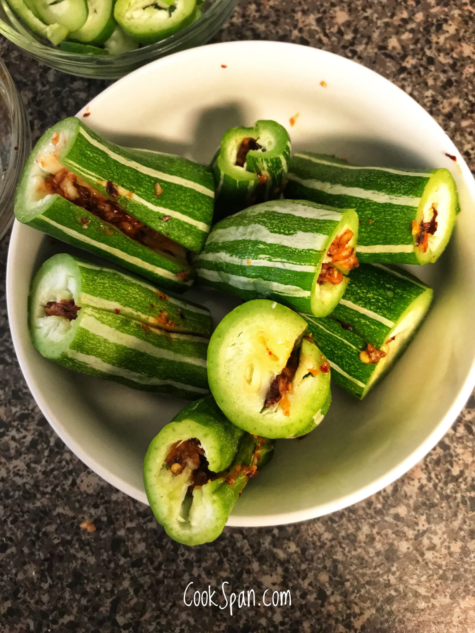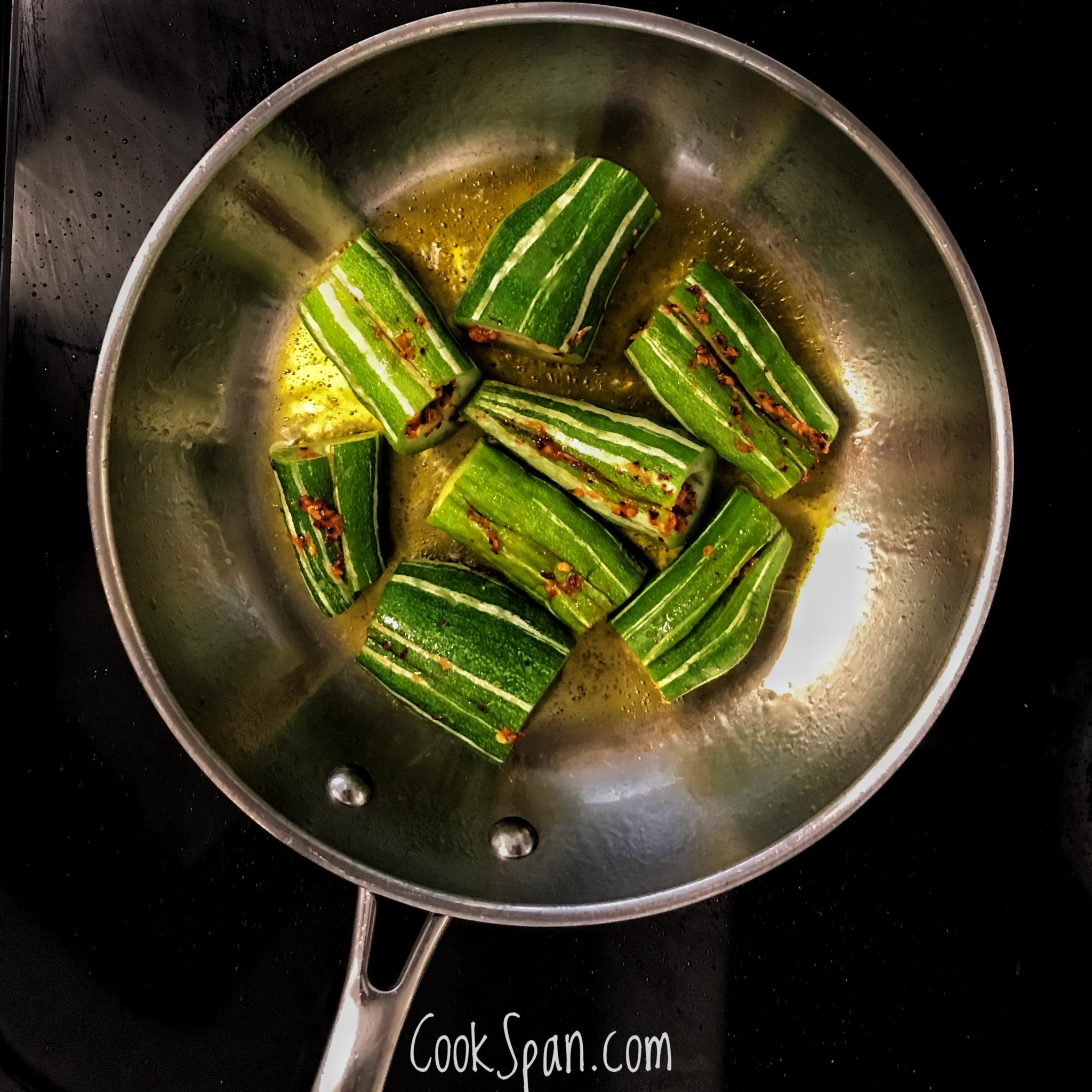 Frying Pan with oil 6. Add the stuffed snake gourd and cover and cook for 2-3 mins in medium heat.