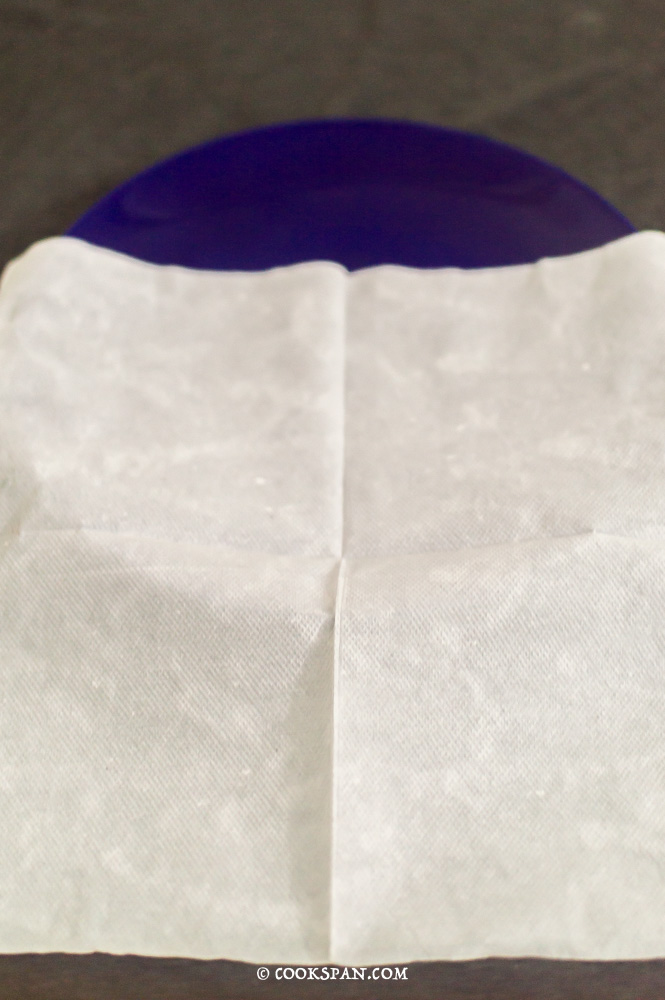- Add the Chapati or Roll covers in such a way that half of it stays on the tissue paper.